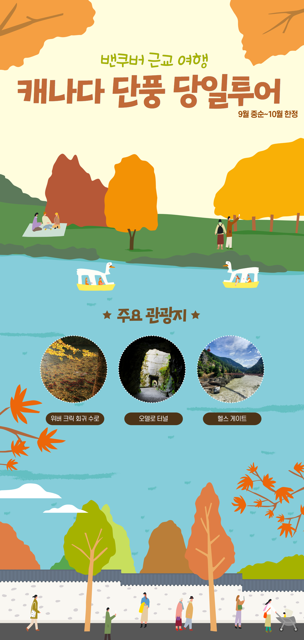 단풍시즌 특별출발 당일투어 | 당일 | 밴쿠버 | CAD 229 |