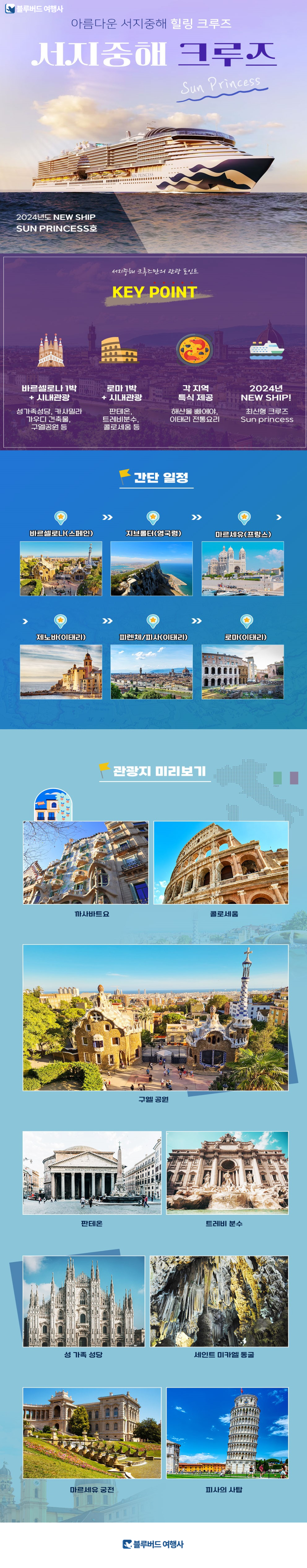| [전문 인솔자 동반] 서지중해 3개국 크루즈 10박 11일 | 10박 11일 | 바르셀로나(Barcelona) | USD 2,900 |